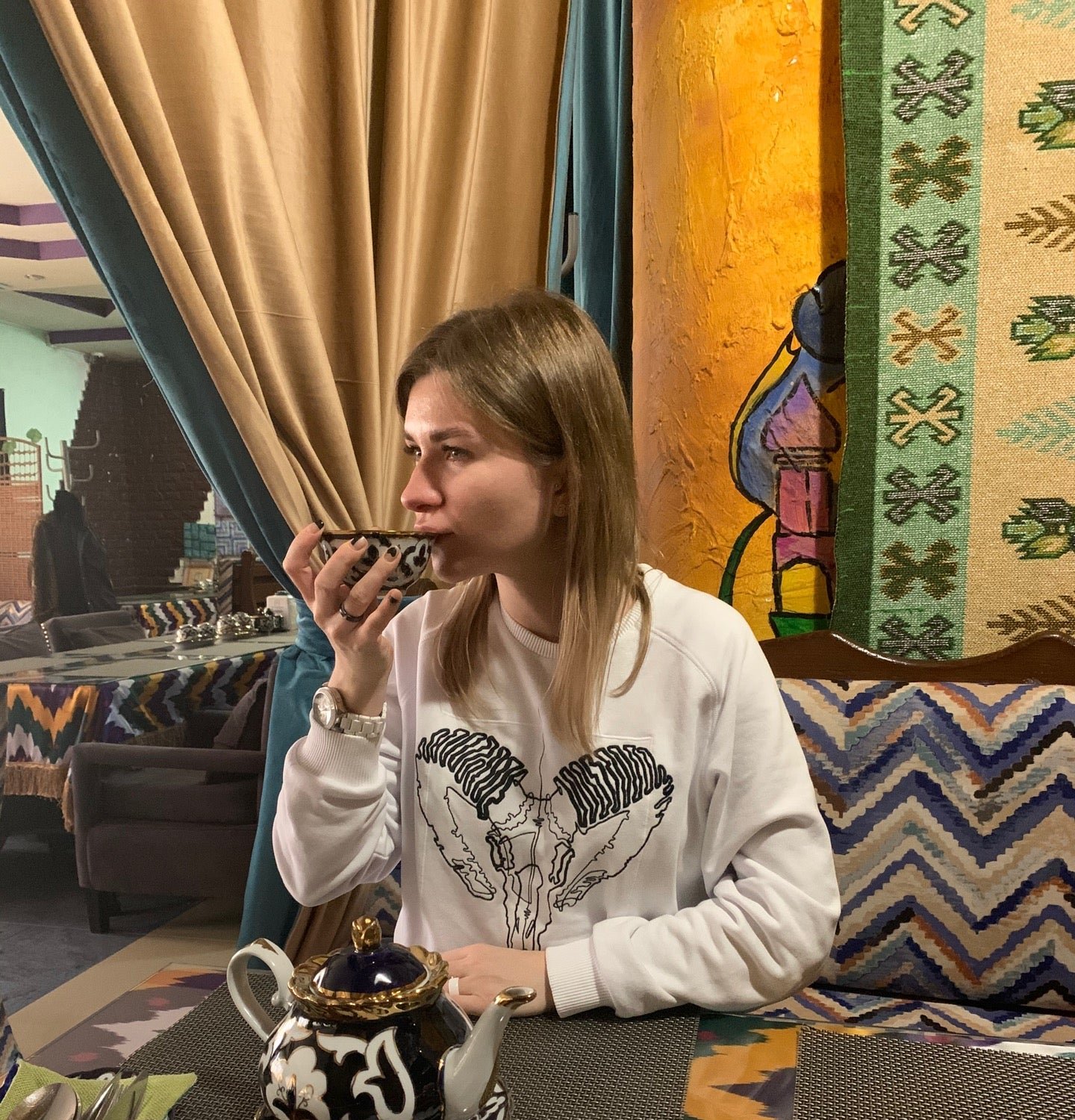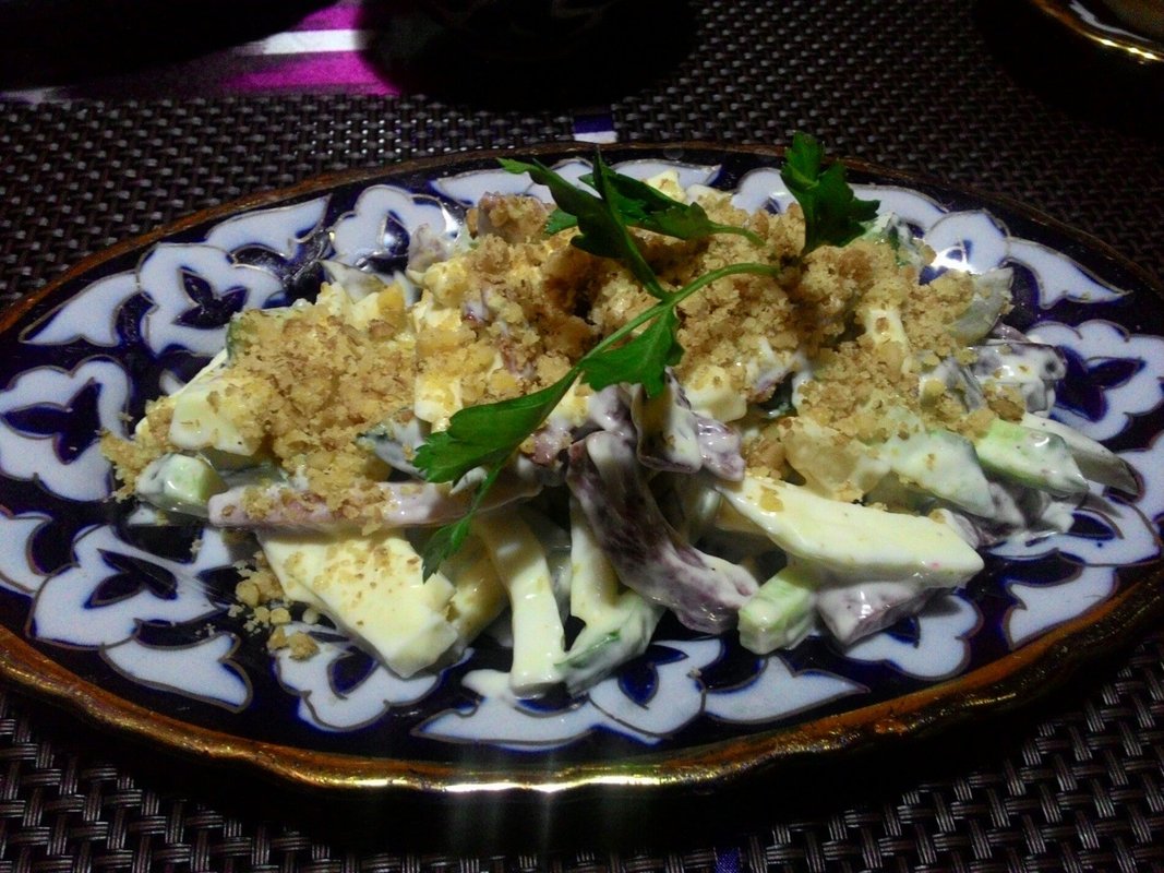 Хочется отметить обслуживание, парней-официантов!!! Работают отлично, очень вежливы! Кухня чисто узбекская, на любителя. Но думаю, из названия это и так понятно. В общем, впечатление приятное!