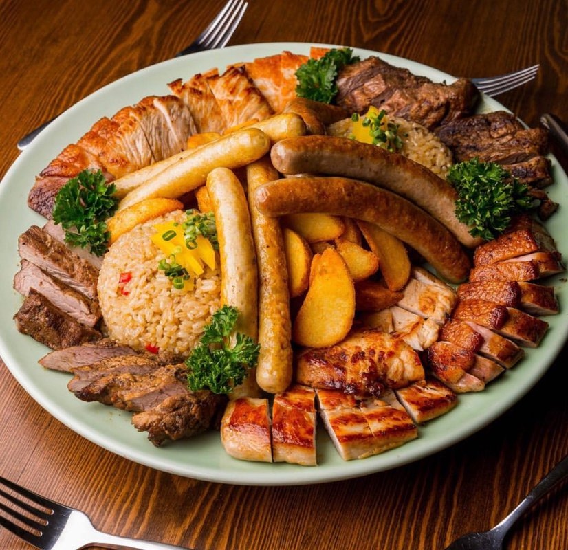 Заказать здесь можно пасту и пиццу, роллы, бургеры и многое другое. Так же в будние дни ресторан предлагает бизнес ланчи с 12:00—15:00. Для маленьких гостей разработано специальное детское меню.