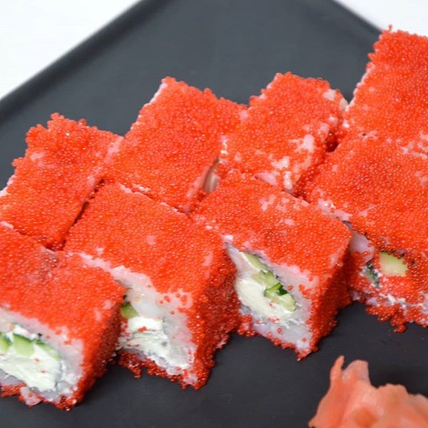 Отметив, что клиентам непривычно видеть листья нори снаружи, один повар закатал их внутрь с начинкой, обсыпав поверхность икрой. Кто ещё не пробовал Калифорнию? Вперёд к нам!👍