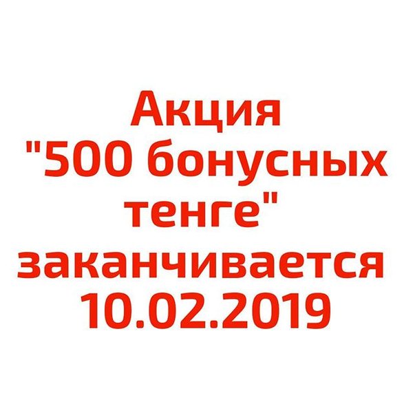 Дорогие друзья! Уведомляем Вас о предстоящем завершении акции «500 бонусных тенге». Акция продлится до 10.02.2019 г. включительно. Для того, чтобы воспользоваться ею. зарегистрируйтесь на нашем сайте, оформите там заказ и при оформлении нажмите кнопку «Оплатить с бонусного счета».