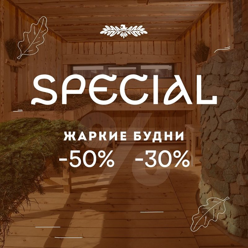 - 50% на все банные процедуры и аренду дома - время заезда с 08:00 до 12:00 - 30% на все банные процедуры и аренду дома - время заезда с 12:00 до 16:00.