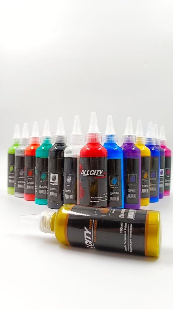 Заправка Allcity Permanent Paint Акриловая основа с растворителем позволяет заправке лучше закрепляться на поверхности. Яркие плотные цвета будут отлично выглядеть как на черном, так и белом фонах, также цвета перекрывают друг друга. Высокая пигментация, быстросохнущая. Заправку можно наносить практически на все виды поверхностей: стекло, металл, пластик, камень, бумага, холст, картон, дерево, керамика. В палитре 14 цветов и на каждом флаконе удобный индикатор. Идеально для сквизеров. Объём: 100 ml Стоимость: 3000 тг