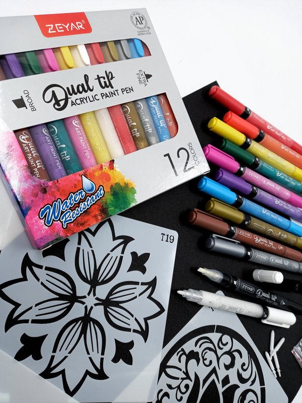 оховатых поверхностей ️ В комплекте 12 маркеров, сменные перья 1,5мм, 4 различных трафарета Стоимость: 12 600 тг Мы находимся по адресу: г. Нур-Султан, ул. Токпанова, д.30 График работы: КАЖДЫЙ ДЕНЬ с 10:00 до 19:00 Доставка по всему Казахстану Для заказа пишите в директ, переходите по ссылке в шапке профиля или звоните по телефону