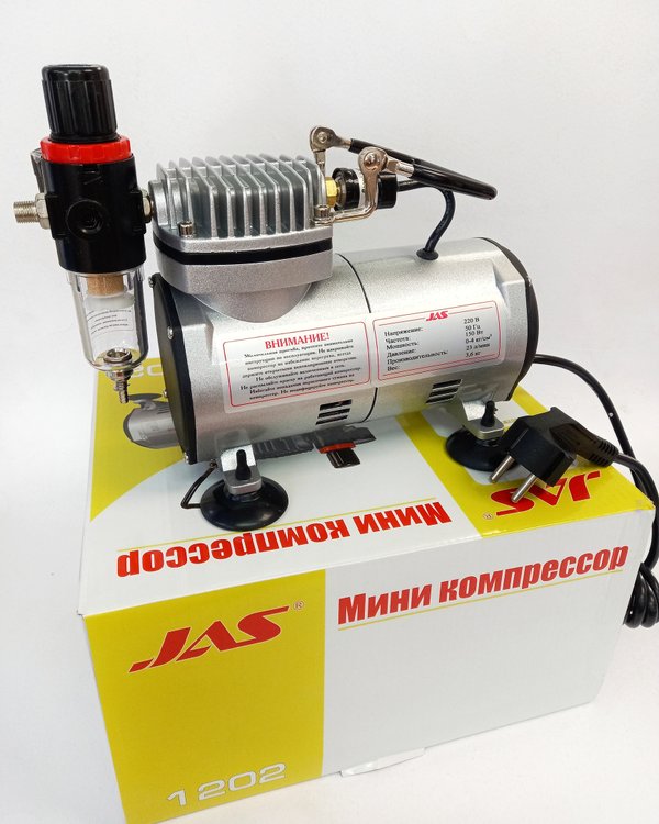 егко разместить компрессор на рабочем столе и при необходимости брать его на выезд. ⠀ Компрессор автоматически выключается при прекращении расхода воздуха, устанавливает в системе давление в 4 атм, начинает работать снова при снижении давления до 3 атм. ⠀ Jas 1202 имеет низкий уровень шумности, можно спокойно работать дома или в студии, не мешая окружающим. ⠀ Есть возможность регулировки давления на выходе от 0 до 4 атм. ⠀ Стоимость: 35 000 тг ⠀