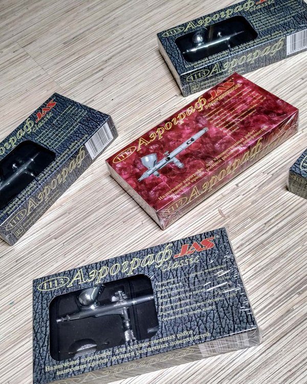 Простой и надежный аэрограф Jas 1113. Отличный вариант попробовать свои силы в аэрографии. Двойного независимое действие, верхняя подача, емкость бачка 7мл, сопло 0.3мм. Для любых видов работ.