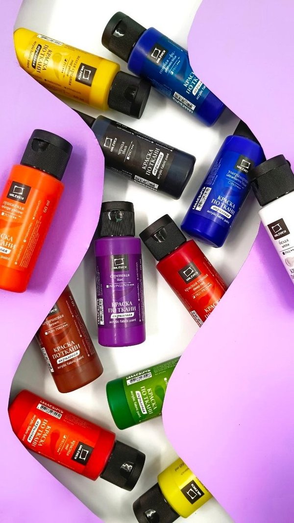 Акриловые краски на водной основе Малевичъ для росписи одежды и тканей различной плотности, а также натуральной и искусственной кожи. Краски светостойкие, отлично смешиваются, легко наносятся и быстро высыхают. Особенности применения: Нанесите рисунок на чистый материал, через 3—4 часа прогладьте место размещения рисунка с изнаночной стороны утюгом без пара при средней температуре. Рисунок на материале, который невозможно прогладить с изнаночной стороны, например, обувь, нужно обработать феном с лицевой стороны. Готовое изображение не требуется… — Читать дальше