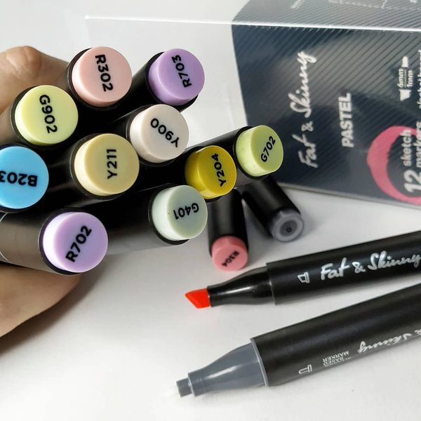 Наборы скетчмаркеров Fat&Skinny — это великолепные двухсторонние маркеры, которые помогут реализовать любые творческие или дизайнерские замыслы, создать скетчи, эскизы и иллюстрации.