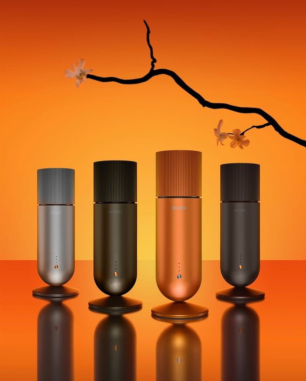 Аромастанция BORK. Управляйте моделью при помощи голоса или через фирменное приложение, устанавливая время, площадь и интенсивность распыления. Подходит для пространств до 100 кв.м. Удостоена награды iF Design Award.