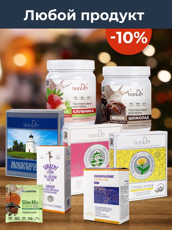 переедания. Выбирайте то, что действительно любите: не нужно пробовать все подряд. Не ешьте от скуки. Если вы сидите за столом в новогоднюю ночь, смотрите телевизор, а под рукой постоянно ложка с салатиком, вернитесь к реальности))) Отодвиньте тарелку и выпейте стакан теплой простой воды. После этого вы поймете, действительно ли хотите еще или уже достаточно. Активность – включите даже небольшую, но физическую нагрузку, которая поможет сжечь лишние кг. Прогулка, танцы, игры с детьми, покатушки на тюбингах и т.д. Спланируйте праздничное меню заранее. Помимо «ПП-запрещеночки», пусть обязательно будут свежие овощи, фрукты, зелень, нежирный белок. Ну и если все же правила нарушены, и вы позволили себе слишком много – помощники TianDe в деле! Они помогут вам поддержать организм и избежать лишний калорий. «Китайские кофейные бобы» Этот напиток настоящий подарок для вашей пищеварительной системы. Плоды кассии александрийской известны своими мягкими очищающими свойствами, которые помогут вашему телу легче переваривать праздничные блюда. Заварите чашечку этого напитка вечером и наслаждайтесь вкусом, зная, что он работает на вас! Сорбент с пектином цитрусовых и морской Зостеры Верный союзник в детоксикации. Пектин цитрусовых и морская зостера обладают абсорбирующими свойствами, помогая связывать и выводить из организма вредные вещества и излишки жиров. Это может снизить нагрузку на пищеварительную систему и предотвратить набор веса. «Лимфобаланс» Позаботьтесь о лимфатической системе: она играет важную роль в выведении лишней жидкости и токсинов. Этот концентрат поможет поддержать ее работу, что особенно актуально в период праздников, когда мы склонны к перееданию и употреблению соленой пищи. Ну что, готовимся наслаждаться праздником, вкусной едой и теплым общением с близкими! Главное помним про умеренность и осознанный подход во всем! Используйте предложенные напитки TianDe как дополнительную поддержку, но не забывайте о базовых принципах здорового образа жизни. А какие у вас есть секреты, чтобы встретить Новый год в отличной форме? Делитесь в комментариях! Канал TianDe на платформе MAX! Присоединяйтесь по ссылке: