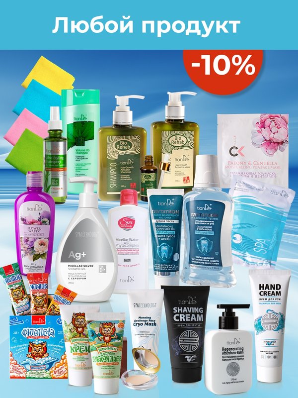 я мужчин + дезодорант «Мужской выбор». Все, что нужно для уверенности и свежести на каждый день! «Нежный уход»: крем-гель для душа и крем для рук «Солнечные оливки» + японская мочалка-полотенце для тела. Настоящий SPA-уход, бархатистость и сияние кожи. «Сияние молодости»: бьюти-маски для лица Skin Triumph + роликовый массажер для лица. Набор для мгновенного преображения, тонуса и молодости кожи! «Здоровье и гармония»: кисель-биотик + сорбент с пектином цитрусовых и морской зостеры + «Комплекс с виноградными косточками»* + детокспластырь для ног. Перезагрузка, легкость и восстановление организма после праздников и в целом!) «Идеальные волосы и укладка»: шампунь и стайлинг-спрей для волос с алоэ + восстанавливающий крем для рук с экстрактом алоэ вера. Здоровые, блестящие волосы и безупречная прическа – каждый день! Основа стиля любой женщины! Сделайте этот Новый год особенным с подарками от TianDe! *БАД. Не является лекарством! Канал TianDe на платформе MAX! Присоединяйтесь по ссылке: