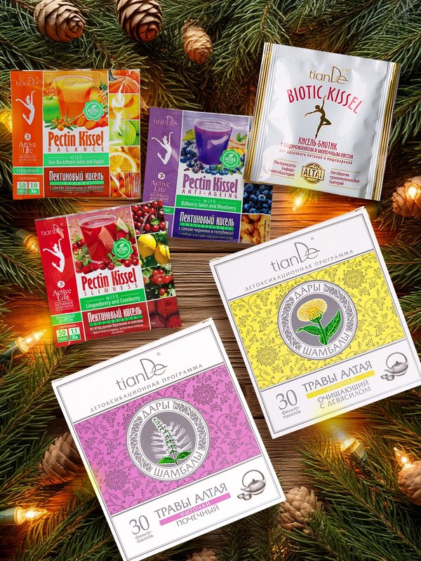 орт ЖКТ! — Пектиновый кисель из ягод дикой брусники и клюквы — Пектиновый кисель с соком облепихи и яблоком «Баланс» — Пектиновый кисель с соком черники и голубикой «Омолаживающий» — Кисель-биотик с подорожником и молочным овсом А чтобы закрепить эффект и вывести все лишнее – фиточаи «Дары Шамбалы»: — очищающий с девясилом; — почечный. Не дайте новогодним излишествам испортить вам начало года!)) Восстановитесь с продуктами TianDe и будьте полными сил и энергии! TianDe в MAX!