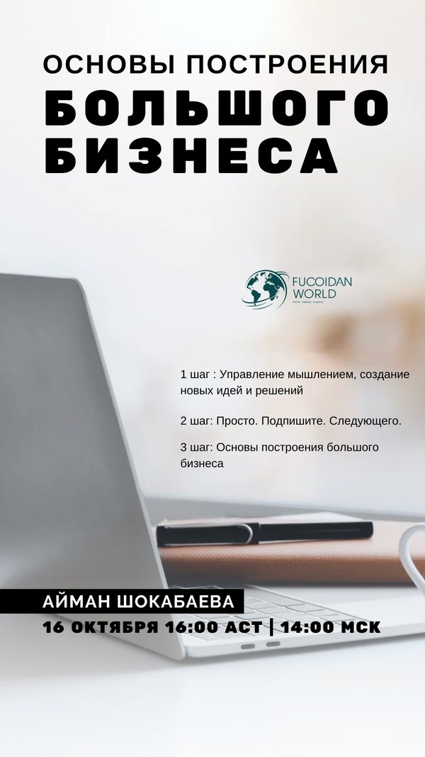 Основные преимущества бизнеса с компанией «Мир Фукоидана» 23 октября 2025 14:00 (Москва) | 16:00 (Астана) В сутках всего 24 часа — это неоспоримый факт. Это то время, что даёт нам возможность сделать что-то важное и стать чуть ближе к деньгам и признанию! Для этого нужны амбиции и желание двигаться вперёд. И этот эфир — про те ключевые преимущества бизнеса, которые поднимают ваш градус мотивации и желание быть, действовать и строить команды! А ведь преимущества бизнеса с компанией «Мир Фукоидана» — тоже неоспоримый факт! Хотите узн… — Читать дальше