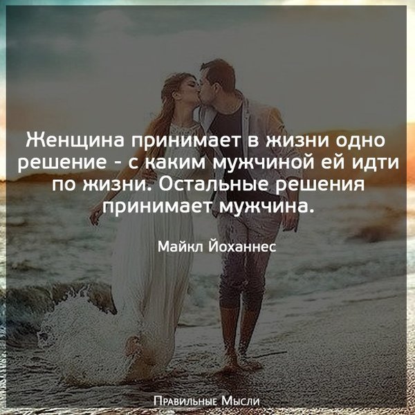 у. Можем ли мы винить мужчин за то, что они несамостоятельные и инфантильные? Деградация мужчин происходит из-за полной деградации женщин. Женщины по тем или иным причинам зашли на территорию мужчин и научились делать две вещи: зарабатывать деньги и принимать решения. Женщины не ведают, что творят. Возможность зарабатывать кружит женщинам голову, создает впечатление независимости и дает возможность все решать самой. Женщина выходит замуж и постепенно, а иногда и сразу, сосредотачивает власть в семье в своих руках, а для своего мужчины она становится «мамой». Мы не даем мужчине времени сообразить, собраться с силами. Он выходит из-под материнского крыла, и тут мы его «подхватываем», а он заметьте, соглашается. Дело в том, что следовать своей природе гораздо сложнее, чем противоположной. Ему сложно принимать решения и нести ответственность, а женщине сложно идти за мужчиной и не вырываться вперед. Возможность зарабатывать служит женщине плохую службу. Она этой возможностью околдована, она приобретает ложную силу, которая поощряет ее желание опираться на себя, не слушать мужчину, а тем более следовать за ним. Она слушает только себя, и ей очень нравится независимость. Идти за мужчиной — это очень тонкое искусство, которому девочка может научиться только у мамы. А если мама никогда не слушала своего мужа, и все решения принимала сама? Придется учиться заново, и сразу скажу — ой, как это непросто! Мужчина, который не принимает решений, обречен. Ведь его мужественность и мужская самореализация возможна только при его способности принимать решения. Но женщина, которая захватывает власть, разрушает эту способность и мужскую волю. На самом деле, это всего лишь разговоры о том, что настоящие мужчины перевелись. Женщине, которая так говорит, удобно жить с инфантильным мужчиной, которого можно легко держать под контролем. Имея этот контроль, женщина наивно предполагает, что держит все в своих руках и может предсказать развитие событий. Но события могут развиваться по нескольким сценариям: Мужчина первым не выдержит и уйдет к другой женщине или просто от вас. 2. Он начнет пить. Как сказал Берт Хеллингер, известный немецкий психолог-расстановщик, что в России мужчины пьют, потому что их не уважают женщины. 3. Он станет полностью вашим ребенком. И вы будете ему в 60—70 лет указывать куда сесть, куда встать. Понаблюдайте за такими вечными мамочками и их сыночками. Картина очень безрадостная. Она — учительница, он — седой ученик. 4. Вы сами уйдете и останетесь одна; зачем вам такой беспомощный мужчина, если вы сможете все сделать сами? Такой женщине мужчина не нужен. Она — «два в одном». Вам какой путь больше нравится? Мне тоже никакой. Для Настоящей Женщины есть другой путь, тоже Настоящий. «Женщина принимает в жизни одно решение: с каким мужчиной ей идти по жизни. Это ее последнее решение, остальные решения принимает мужчина». Женщина должна выбрать мужчину, за которым она пойдет туда, куда он ее поведет. Возможно, он живет в другом городе, в другой стране. Не женщина решает, где они будут жить, а мужчина. Часто женщина тянет мужчину в свою семью, к себе домой, в свою семейную систему. Все вы знаете, что эти истории ничем хорошим не заканчиваются. Это нужно для себя уяснить: женщина следует за мужчиной, а не наоборот. «Согласно порядку любви между мужчиной и ж
