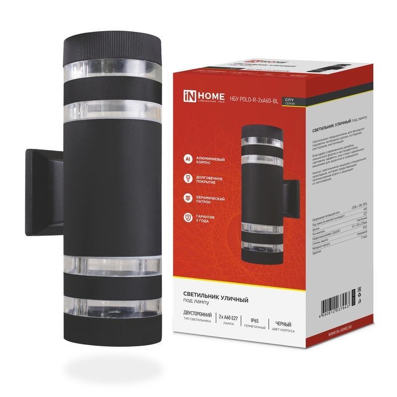 Светильник НБУ POLO-S-2хA60-BL E27 IP65 230В уличный настенный двусторонний IN HOME