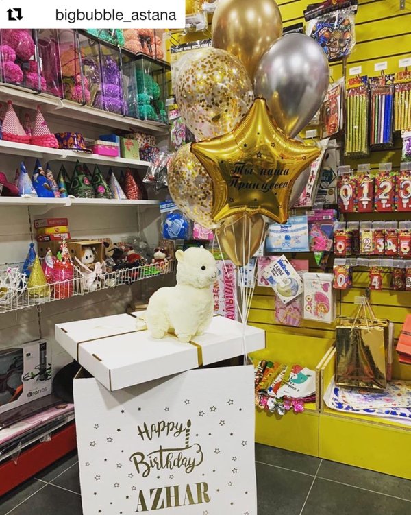 Dauka Mukhamejan (24.10.2020): Шарики от 350 Цифры от 1500 Звезды и сердца от 1000 Персонажи от 2000 Большие шары от 5000тг Доставка круглосуточная Прием заказов с 9—00 до 23—45 ночи Самовывоз тоже с 9—00 утра до 23—45 ночи без обеда и выходных Все виды шаров производства Колумбия, Италия, Испания, Бельгия и США Мы также занимаемся оформлением шарами) Арки, фигуры, стэнды из шаров Магазин находиится по улице 38-я, дом 25, 12 офис ЖК Комфорт Таун 3, под аптекой в углу дома Наш инстаграм bigbubble_astana Наш сайт bigbubble.kz