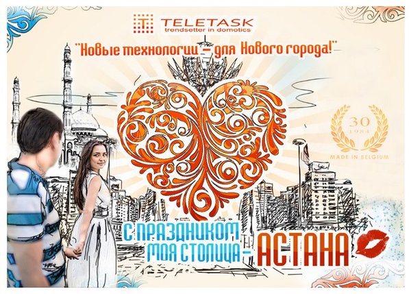 Компания TELETASK Казахстан поздравляет Вас с наступающим праздником- Днем Столицы! Пусть Астаны процветает и с каждым днем становится все лучше и лучше, а мы всеми силами будем помогать ей в этом! Ура!