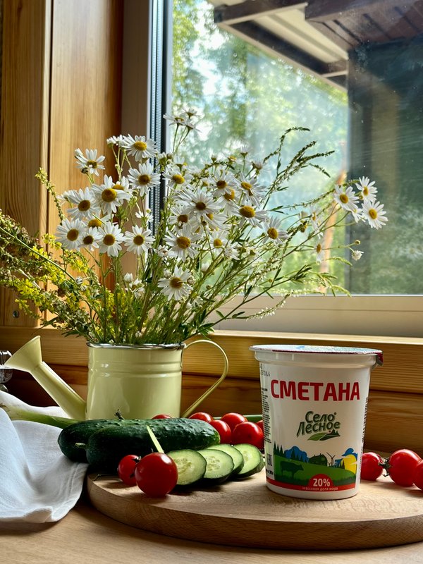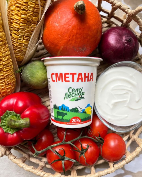 Маусымдық көкөністер әсіресе «Село Лесное» СМ Қаймағымен дәмді. Табиғи, балғын және қалың, ол қарапайым тағамдардың дәмін шығарады және әр тағамды бай етеді Сезонные овощи особенно вкусны со сметаной «Село Лесное». Натуральная, свежая и густая, она подчёркивает вкус простых продуктов и делает каждое блюдо насыщенным