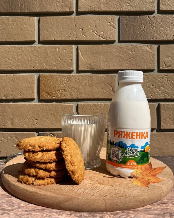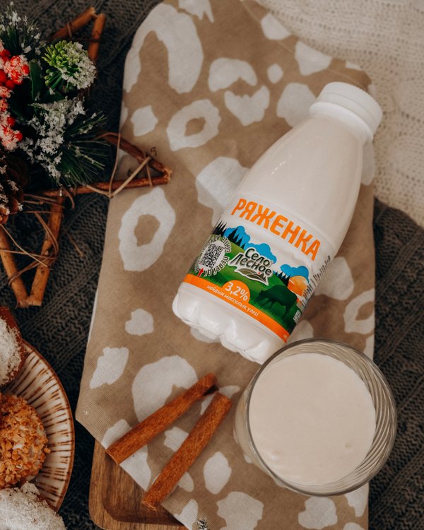 Ряженка «Село Лесное» СМ Қарапайым қуаныш - бір стақан ашытылған сүт және хош иісті печенье. Күннің кез келген сәтінде тыныштық пен жайлылық беретін табиғи дәм. Ряженка ТМ «Село Лесное» Простые радости — стакан ряженки и ароматное печенье. Натуральный вкус, который дарит спокойствие и уют в любой момент дня.