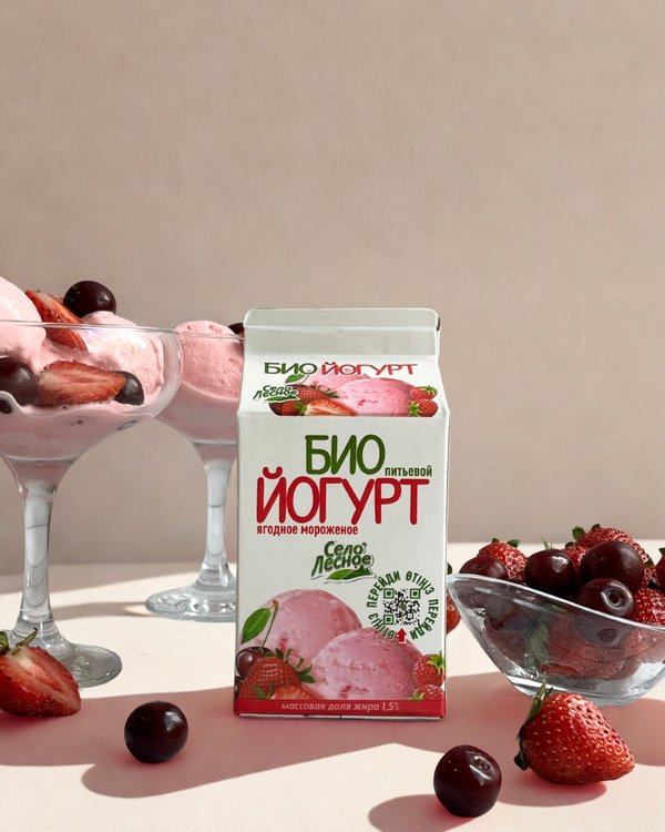 Био-йогурт жидек қосылған балмұздақ «СЕЛО ЛЕСНОЕ» СМ Нәзік текстурасы, жарқын жидек дәмі және жеңіл кремді ноталары оны жазғы күннің тамаша серігі етеді — жеңіл, дәмді және табиғи Био-йогурт ягодное мороженое ТМ «СЕЛО ЛЕСНОЕ» Нежная текстура, яркий ягодный вкус и лёгкие сливочные нотки делают его идеальным спутником летнего дня — лёгким, вкусным и натуральным.