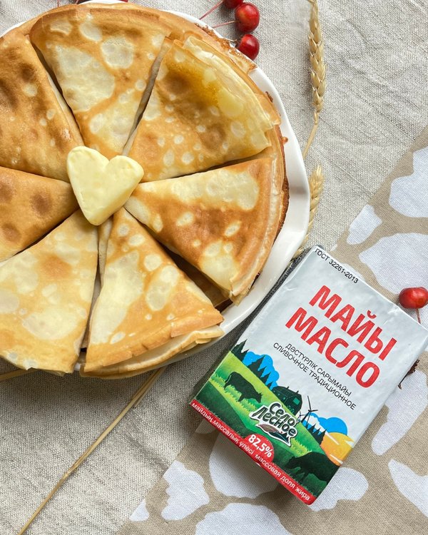 Жылы Қызыл құймақ және «Село Лесное» СМ табиғи майы - бұл әрдайым жайлылық пен үй дәмімен байланысты классика. Уақытпен тексерілген қарапайым комбинация. Тёплые румяные блины и натуральное Масло ТМ «Село Лесное» — это классика, которая всегда ассоциируется с уютом и домашним вкусом. Простое сочетание, проверенное временем.