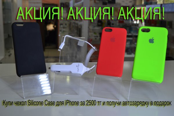 Внимание! Внимание! Внимание! Это очень важная и полезная информация. В нашем магазине стартовала отличная акция. При покупке чехла для iPhone только из серии Silicone Case, вы получаете в подарок автомобильное зарядное устройство Vertex полностью совместимое с любым устройством Apple. Поторопитесь! Количество ограничено))) Наш адрес Республики 26, магазин Akses.
