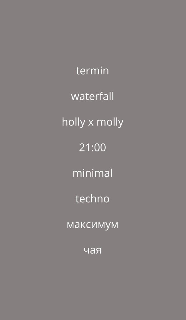 Концепт. Тишина. это экспериментальный проект начальная цель которого исследовать силу молчания. Вдохновением служит архетип состояния — «здесь и сейчас». ЭКСПЕРИМЕНТ ДЛИТСЯ ОДИН ЧАС В это время запрещается разговаривать, участники проекта сосредотачивают внимание не на мыслях, а на органах восприятия. В программе. Немое Кино. Живой Звук. Показ концептуального кинематографа, который озвучит и реставрирует живой игрой в реальном времени, творческий проект TZA. Яркие запахи. Вк… — Читать дальше