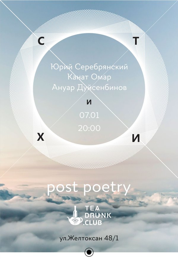 Друзья, у нас внеплановые чтения. Дело в том, что в Астану приехал Юрий Серебрянский. Поэт и писатель из Алматы. Дважды лауреат «Русской премии». И мы решили, что почему бы нам не устроить простые чтения. Ничего особенного. Юрий Серебрянский, Канат Омар и Ануар Дуйсенбинов почитают текст. Приходите. Вход свободный. Желтоксан 48/1, чайно-табачный магазин Rooom. Начало в 20:00. Как раз успеете после рабочего дня. Обнимашки!