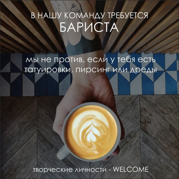 ДРУЗЬЯ! Мы ищем в нашу команду БАРИСТА с опытом работы Скучная работа — это не про нас Хотелось бы отыскать человека который готов развиваться и самореализовываться в нашей команде Мы перезагружаем чайный клуб и готовы предоставить обновлённый чайно-кофейный коворкинг для организации творческих вечеров, мастер классов (и не только!) ориентированных на саморазвитие Мы предлагаем: График работы 2/2 с 12.00 до 21.00 Выход — 1000тг. + 10% с продаж +бонусы за всё, что не входит в должностную инструкцию. Мы хотим, что бы у тебя был: ОПЫТ РАБОТЫ… — Читать дальше