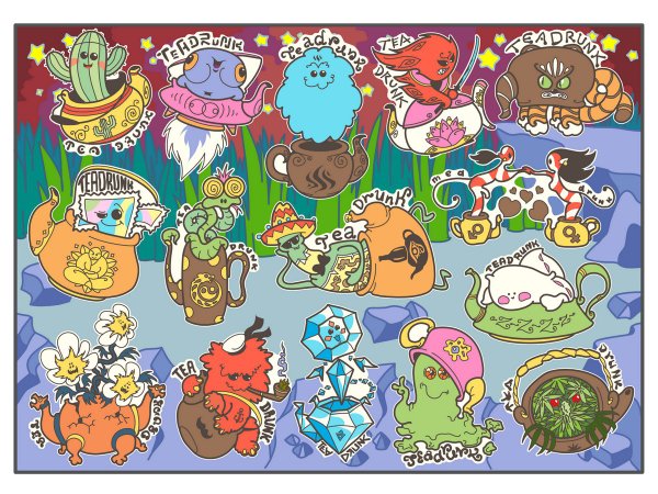 Авторские стикеры для Tea Drunk Club.