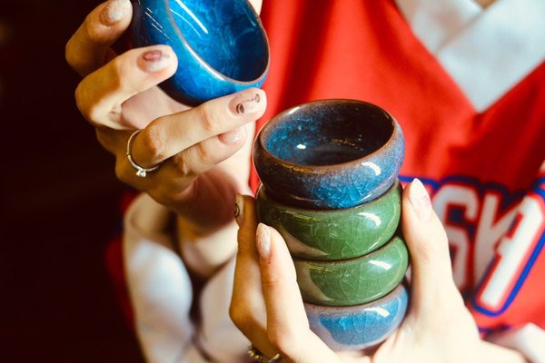 Tea Club (18.07.2019): Глиняные пиалы покрытые цветной глазурью с уникальным эффектом из мелких трещинок, который называется «Колотый лед». Пиалы имеют толстые стенки и не обжигают пальцы рук. Сочетаются с разными видами посуды. Объем — 40 мл. Размеры: h– 30 мм; ø – 65 мм. Желтоксан 48/1