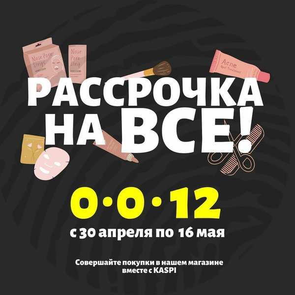 Планируйте покупки вместе с нами и KASPI.KZ! Радуем вас возможностью приобрести у нас уход за кожей лица, уход за волосами, профессиональную декоративную косметику и технику для укладки волос в рассрочку! С 30 апреля по 16 мая Вы можете оформить покупку в нашем магазине в рассрочку до 12 месяцев на Kaspi.kz ⠀ Кроме этого, некоторые продукты доступны и в магазине на Kaspi.kz! Желаем выгодных покупок и солнечного настроения! ⠀