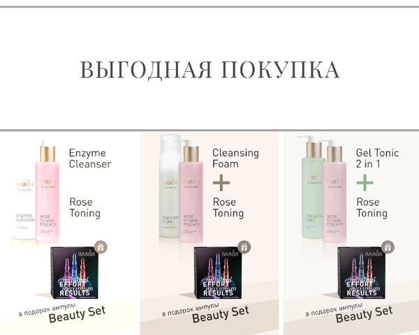 Выгодное предложение от Babor! При покупке двух любимых продуктов от Babor, на выбор: ~Гель тоник 2&1 + Розовый тоник: ~ Пенка — мусс + Розовый тоник : ~ Энзимный пилинг с витамином С + Розовый тоник : В подарок ампулы Beauty effect set! (3 штуки) ⏰Работаем ежедневно с 9:00 до 20:00 Заказать можно по номеру: