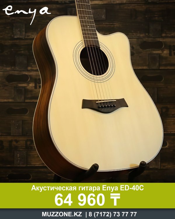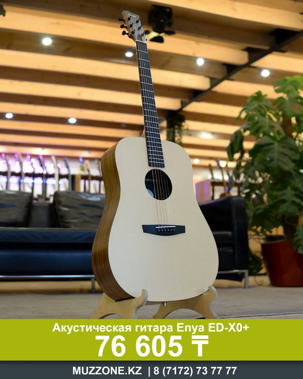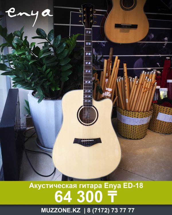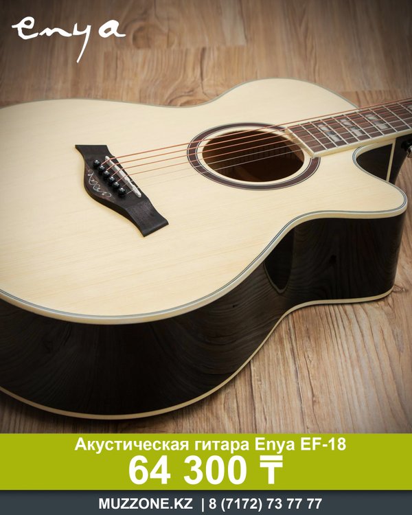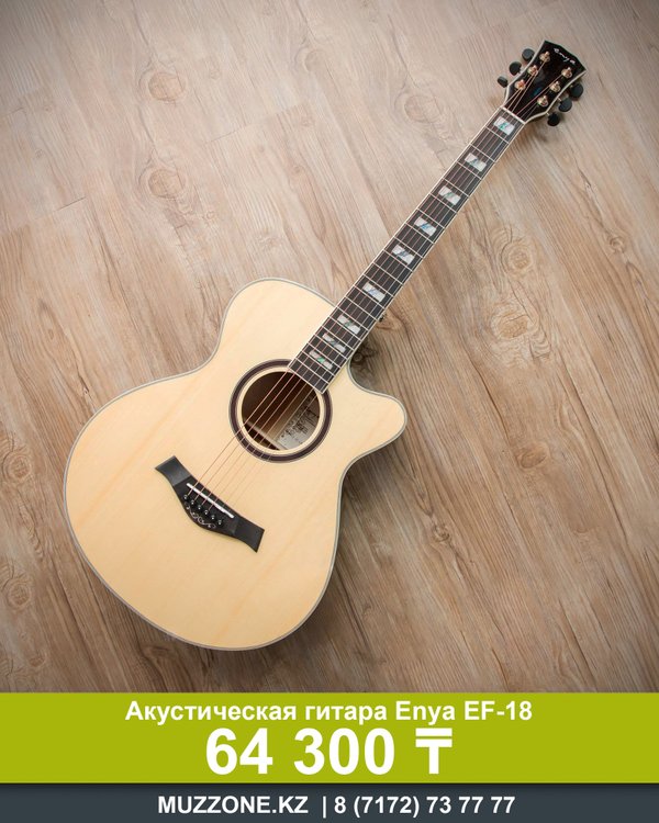устация в виде блоков и натуральный матовый цвет подчеркнут ваш стиль! Надёжный чехол в комплекте — водонепроницаемая защита для транспортировки в любую погоду! Кому подойдёт EF-18? Выступающим музыкантам — мощный звук формы Grand Auditorium с вырезом для удобного соло Авторам песен — тёплый, детализированный тембр для акустических аранжировок Путешественникам — прочный корпус + чехол = гитара всегда в безопасности! Ценителям эстетики — роскошные материалы и лаконичный дизайн! Enya EF-18 — не просто инструмент! Это ваше настроение и творческая история Для оформления заказа переходите по ссылке на наш сайт или приходите в наш магазин по адресу ул. Кажымукана 14 ___________________ ДОСТАВКА по РК и СНГ По всем вопросам:, 35-01-45 ⏰График работы: с 10:00 до 19:00 Пн-Пт; с 10.00 до 17.00 Сб; Вс — выходной Сайт: muzzone.kz Почта: info@muzzone.kz ▶YouTube канал «МузZone Астана»