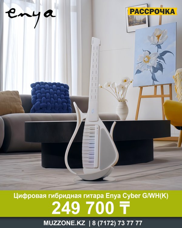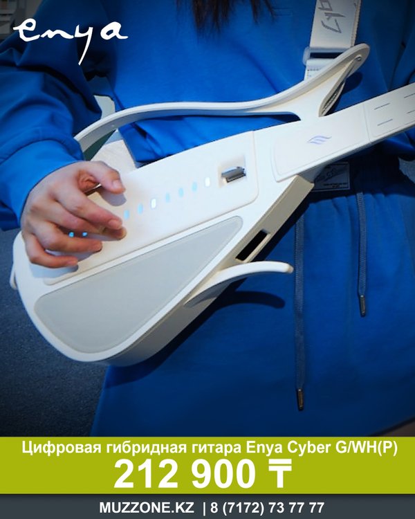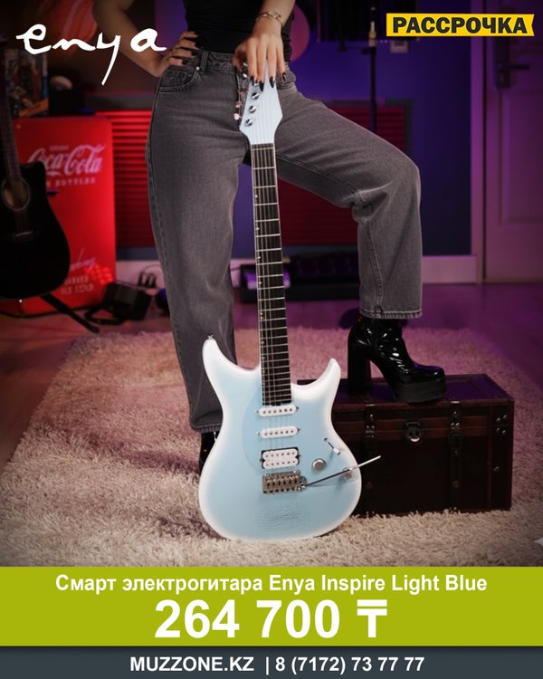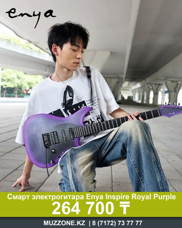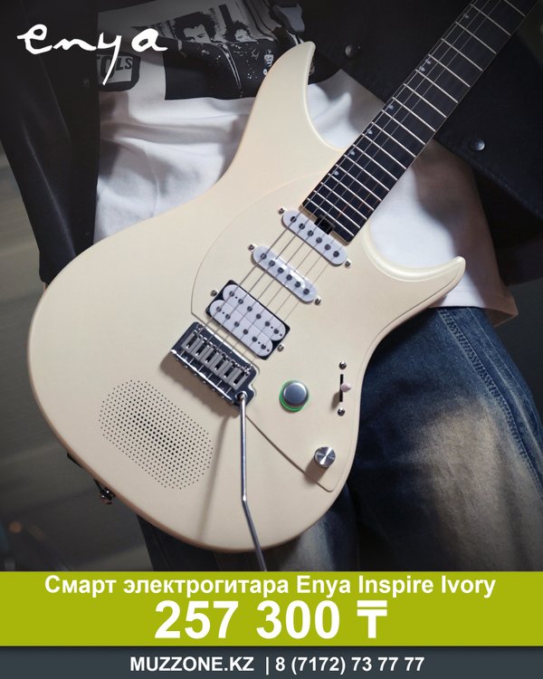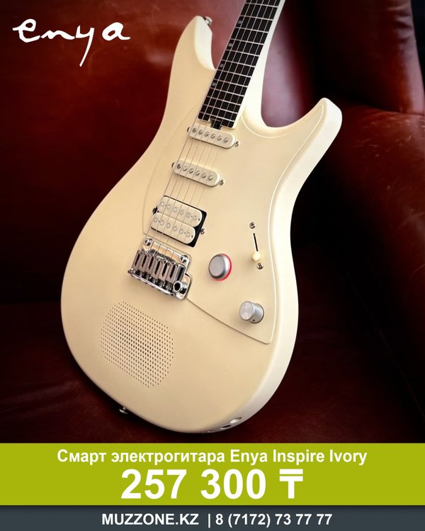 е! Настройка эффектов? Легко! Скачайте приложение Enya Music APP, и весь мир звуковых эффектов окажется у вас в телефоне! Хотите добавить немного реверберации? Изменить тональность? Убрать шумы? Или включить хорус, вибрато, дилэй? Всё это возможно — и не требует студии! Гитара весит совсем немного, но звучит как гигант! Эргономичный корпус, 24 лада, мягкий тонкий гриф, гладкие закруглённые лады, запатентованная система двухточечного тремоло и HSS-конфигурация звукоснимателей превращают любую мелодию в произведение искусства! Разъём для наушников — ваш билет в мир полной музыкальной свободы. Ночь, офис, поезд — теперь вы можете практиковаться без помех для окружающих! Записывайте прямо на гитару! Интегрированная система записи сохраняет до 10 часов игры! Подключайтесь по USB Type-C, и почувствуйте как ваши идеи мгновенно превращаются в треки! До 10 часов автономной работы! И всего 2 часа быстрой зарядки. Этого достаточно, чтобы вдохновение никогда не заканчивалось. Берите гитару с собой — она готова к путешествиям, концертам, спонтанным джемам и репетициям в парке! Высокое качество в каждой детали. Корпус из литого углеродного волокна, гриф из карбона, матовое покрытие цвета слоновой кости, идеально сбалансированная конструкция — это не просто инструмент, это эстетика. Enya Inspire Ivory — это ваша свобода, ваша сцена, ваша история. Музыка больше не требует студии. Она начинается там, где вы уже есть Для оформления заказа переходите по ссылке на наш сайт или приходите в наш магазин по адресу ул. Кажымукана 14 ____________________________________________________ ДОСТАВКА по РК и СНГ По всем вопросам:, 35-01-45 ⏰График работы: с 10:00 до 19:00 Пн-Пт; с 10.00 до 17.00 Сб; Вс — выходной Сайт: muzzone.kz Почта: info@muzzone.kz