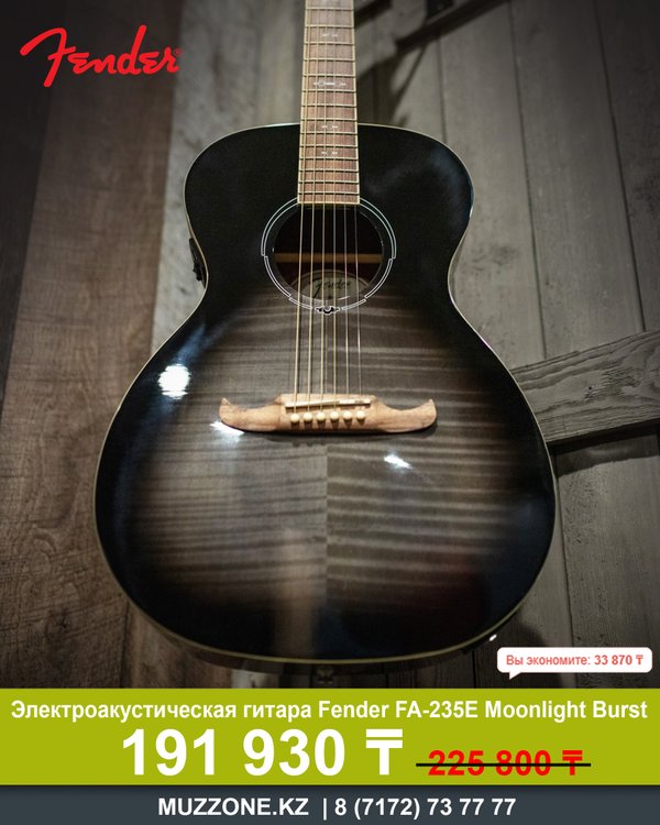 ф из нато + бридж из лавра — комфортная игра и отличное сочетание с декой из клена для яркого тона Электроника Fishman — первоклассное звучание на сцене, встроенный тюнер, регулятор громкости и двухполосный эквалайзер для полного контроля Удобство для всех — подходит как начинающим, так и профессионалам Современный стиль: культовая голова грифа Fender 3+3 и премиальная отделка Moonlight Burst, которая выделит вас на любой сцене! С Fender FA-235E Moonlight Burst вы получите выразительное и вдохновляющее звучание в каждой ноте Для оформления заказа переходите по ссылке на наш сайт или приходите в наш магазин по адресу ул. Кажымукана 14 __________________________________________________________ ДОСТАВКА по РК и СНГ По всем вопросам:, 35-01-45 ⏰График работы: с 10:00 до 19:00 Пн-Пт; с 10.00 до 17.00 Сб; Вс — выходной Сайт: muzzone.kz Почта: info@muzzone.kz ▶YouTube канал «МузZone Астана»