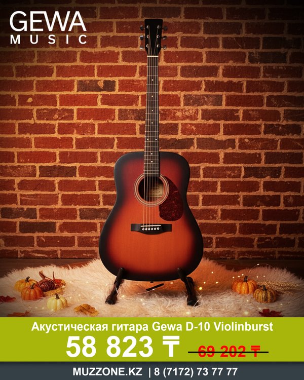 ж и накладка грифа; мягкая, комфортная игра и долговечность Насыщенный цвет Violinburst с глянцевой отделкой — стильный внешний вид, который притягивает взгляды Подходит для всех уровней — от начинающих до продвинутых гитаристов D-10 звучит ярко, выглядит эффектно и дарит удовольствие от каждой сыгранной ноты! Для оформления заказа переходите по ссылке на наш сайт: или приходите в наш магазин по адресу г.Астана, ул. Кажымукана 14 _____________________________________________________________________ ДОСТАВКА по РК и СНГ По всем вопросам:, 35-01-45 ⏰График работы: с 10:00 до 19:00 Пн-Пт; с 10.00 до 17.00 Сб; Вс — выходной Сайт: muzzone.kz Почта: info@muzzone.kz ▶YouTube канал «МузZone Астана»