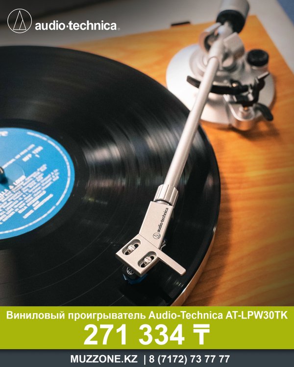 ркнёт стиль вашего интерьера Максимальная детальность: литой алюминиевый диск с резиновым ковриком снижает вибрацию и сохраняет естественность звука Ваш уникальный звук: универсальная головка AT-HS3 и совместимость со всеми стилусами серии VM95 открывают простор для экспериментов Удобство для вас: встроенный фонокорректор, регулируемый антискейтинг и прямой тонарм с гидравлическим демпфированием Надёжность проверенная временем: более 55 лет аналогового совершенства Audio-Technica в каждой детали Всё включено: стереокабель RCA-RCA, адаптер на 45 об/мин, резиновый коврик и пылезащитная крышка уже в комплекте. Audio-Technica AT-LPW30TK — это не просто проигрыватель, это ваш личный портал в мир виниловой эстетики и безупречного звучания Для оформления заказа переходите по ссылке в шапке профиля! или приходите в наш магазин по адресу ул. Кажымукана 14 ________________________________________________________________ ДОСТАВКА по РК и СНГ По всем вопросам:, 35-01-45 ⏰График работы: с 10:00 до 19:00 Пн-Пт; с 10.00 до 17.00 Сб; Вс — выходной Сайт: muzzone.kz Почта: info@muzzone.kz ▶YouTube канал «МузZone Астана»