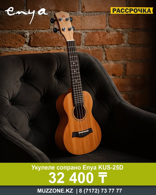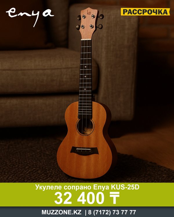 ого дерева, гриф из окуме Палисандровый бридж и накладка обеспечивают чистый, насыщенный звук Надёжные колки Rubber Die-Cast — строй держится идеально! Профессиональные струны Enya — мягкие, звонкие, долговечные Фирменный чехол в комплекте: берите музыку всегда с собой! Окунитесь в мир музыки с Enya KUS-25D и пусть каждая нота звучит как тёплый гавайский бриз! Действует рассрочка Для оформления заказа переходите по ссылке на наш сайт: или приходите в наш магазин по адресу ул. Кажымукана 14 _______________________________________________________________ ДОСТАВКА по РК и СНГ По всем вопросам:, 35-01-45 ⏰График работы: с 10:00 до 19:00 Пн-Пт; с 10.00 до 17.00 Сб; Вс — выходной Сайт: muzzone.kz Почта: info@muzzone.kz ▶YouTube канал «МузZone Астана»