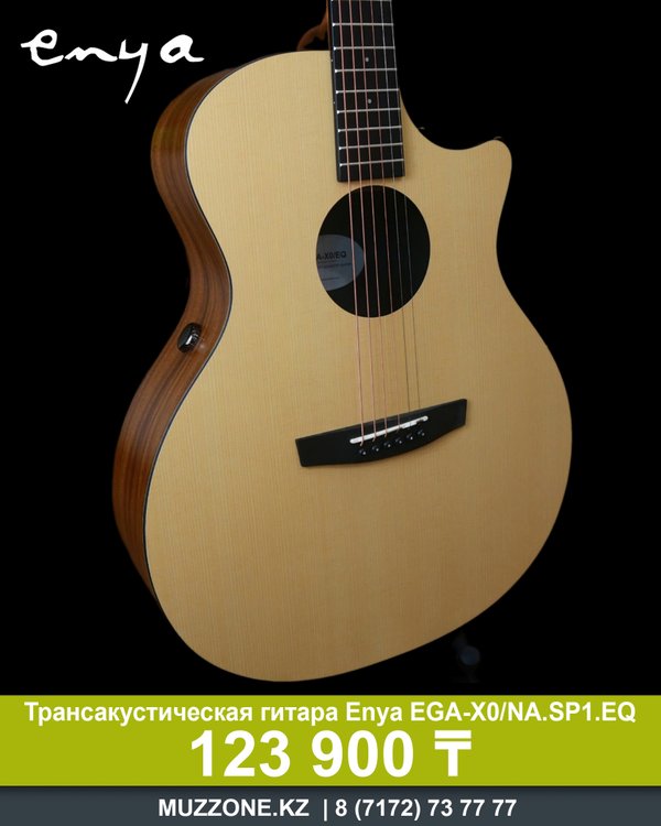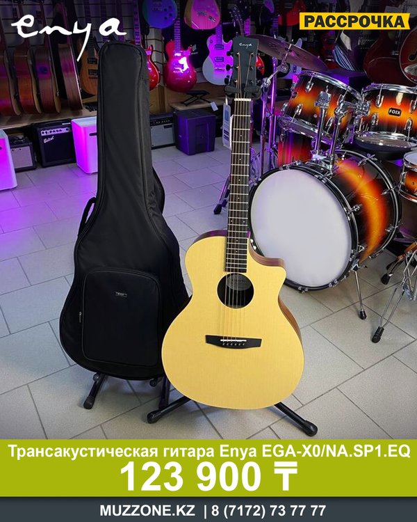 орное отверстие — не просто эффектно, но и функционально! Оно улучшает отклик на средних частотах и работает как встроенный эквалайзер Встроенная магия звука — фирменный звукосниматель Enya AcousticPlus с хорусом и реверберацией прямо из корпуса, без педалей и внешних эффектов Каждая деталь продумана — гриф из углеволокна с алюминиевым анкерным стержнем, стильный чёрный пикгард, утончённые линии корпуса. Всё в этой гитаре выглядит дорого и современно! Полный комплект для комфорта: фирменный кейс, ремень, кабель, зарядка и ключ — всё включено! ENYA X4 PRO/S4.EQ — это инструмент, который по-настоящему впечатляет с первого взгляда и вдохновляет с первой ноты! Для оформления заказа переходите по ссылке на наш сайт: или приходите в наш магазин по адресу ул. Кажымукана 14 _______________________________________________________________ ДОСТАВКА по РК и СНГ По всем вопросам:, 35-01-45 ⏰График работы: с 10:00 до 19:00 Пн-Пт; с 10.00 до 17.00 Сб; Вс — выходной Сайт: muzzone.kz Почта: info@muzzone.kz ▶YouTube канал «МузZone Астана»
