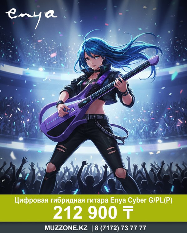 ение Enya Music: настройка эффектов, доступ к курсам, партитурам и аккомпанементам в пару кликов Конфигурация HSS: универсальный тон для любых жанров: от мягких баллад до тяжёлого рока Разъём для наушников: практикуйтесь без помех окружающим, где бы вы ни были ⏺ Запись до 10 часов музыки через USB Type-C: сохраняйте свои идеи прямо в гитаре До 10 часов автономной работы и быстрая зарядка: свобода от розеток и ограничений Высокое качество сборки: гриф из карбона, закруглённые лады, система Zero-Fret и надёжное тремоло для плавной игры и стабильности строя Это инструмент, который вдохновляет создавать, играть и расти каждый день! Музыка ещё никогда не была такой доступной и захватывающей Для оформления заказа переходите по ссылке на наш сайт: или приходите в наш магазин по адресу ул. Кажымукана 14 _______________________________________________________ ДОСТАВКА по РК и СНГ По всем вопросам:, 35-01-45 ⏰График работы: с 10:00 до 19:00 Пн-Пт; с 10.00 до 17.00 Сб; Вс — выходной Сайт: muzzone.kz Почта: info@muzzone.kz ▶YouTube канал «МузZone Астана»