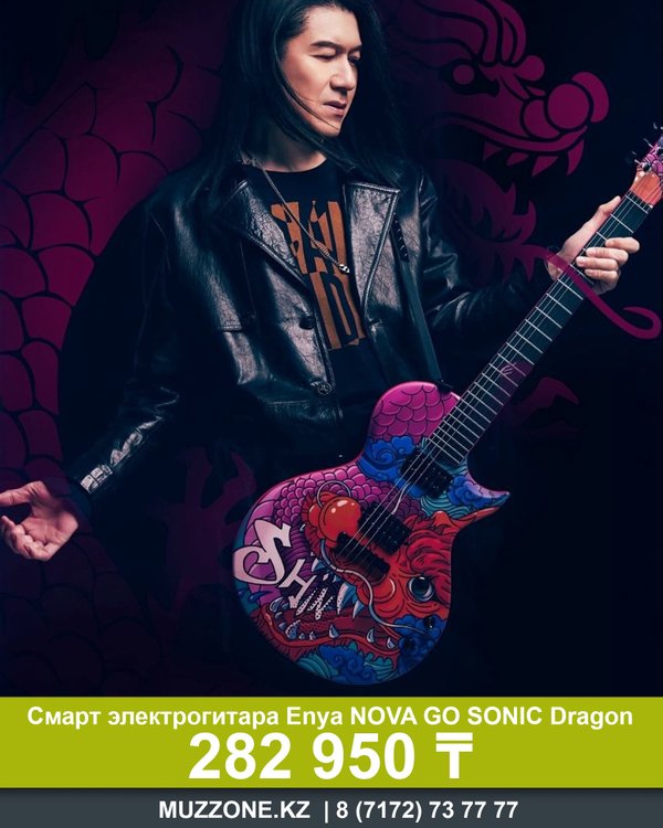 ием! Дизайн LOONG Эксклюзивное оформление в стиле мифического Лунга, созданное в сотрудничестве с мастером Шиничи Кобаяши, придает каждому аккорду смелость и запоминаемость. При включении кнопка вспыхивает, как глаза дракона, и мощь ощущается сразу! Универсальное звучание без границ! Чип Enya S1 DSP дарит вам эквалайзер, хорус, вибрато, питч‑шифт, дилей, реверб и шумоподавление. Сохраняйте до 4 собственных пресетов — переключайтесь одной кнопкой и меняйте характер трека на лету Полное подключение! Двухрежимный Bluetooth — для воспроизведения треков, драм‑машин и управления через приложение Enya Music APP с уроками и партитурами. Разъём для наушников позволяет репетировать тихо даже в ночной гостинице или офисе Лёгкая, прочная, всегда готова к вашему творчеству! Корпус из углеродного волокна весит минимум и не боится перепадов климата, а гриф с закруглёнными ладами и литые колки подарят стабильный строй. Зарядка занимает всего 2 часа — и вы снова готовы к 10‑часовому марафону музыки! Ваш идеальный компаньон в дороге и на сцене! В комплекте всё, что нужно: фирменный чехол, ключ и кабель для быстрой зарядки Берите гитару в поезд, самолёт или просто за спину — и отправляйтесь покорять новые площадки! NOVA GO SONIC — выбирайте инструмент, который звучит, сияет и вдохновляет так же ярко, как ваши мечты! Действует рассрочка Для оформления заказа переходите по ссылке на наш сайт или приходите в наш магазин по адресу ул. Кажымукана 14 ___________________ ДОСТАВКА по РК и СНГ По всем вопросам:, 35-01-45