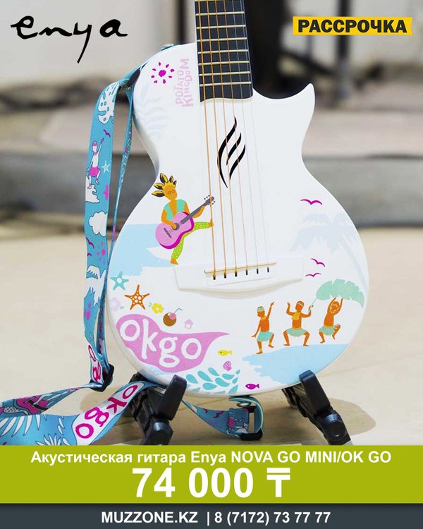 ого поколения — устойчива к царапинам, вмятинам и трещинам, выдерживает температуру от -20°C до +60°C и влажность от 10% до 90%! Идеальна для путешествий: лёгкая, компактная и удобная, легко помещается в рюкзак или багаж Супер-плавная играбельность — гриф с тонким профилем, округлые лады и Zero-Fret дарят ощущение лёгкости, как на электрогитаре Современный дизайн — ультратонкий корпус, стильная форма и гладкие закруглённые края — эстетика и комфорт в одном Подходит всем — детям, взрослым, путешественникам. Идеальна для сцены, студии или уличных выступлений Enya Nova Go Mini — путешествуйте, выступайте, вдохновляйте! Ваша гитара всегда готова к приключениям! Действует рассрочка Для оформления заказа переходите по ссылке на наш сайт: или приходите в наш магазин по адресу г.Астана, ул. Кажымукана 14 ______________________________________________________________________ ДОСТАВКА по РК и СНГ По всем вопросам:, 35-01-45 ⏰График работы: с 10:00 до 19:00 Пн-Пт; с 10.00 до 17.00 Сб; Вс — выходной Сайт: muzzone.kz Почта: info@muzzone.kz ▶YouTube канал «МузZone Астана»