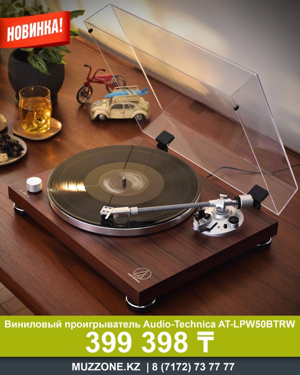 вый тонарм, двойной магнитный картридж AT-VM95E, антирезонансный диск, встроенный фонокорректор и регулируемый антискейтинг — всё для чистейшего, детализированного звука без искажений Слушайте как хотите: по Bluetooth® — в наушниках или через беспроводные колонки, или подключите его по классике — через RCA к вашей любимой аудиосистеме В комплекте — всё, чтобы начать прямо из коробки! Никаких компромиссов. Только стиль. Только винил. Только вы и музыка! AT-LPW50BT-RW — ваш личный ритуал прослушивания, где каждая пластинка звучит как впервые Для оформления заказа переходите по ссылке на наш сайт или приходите в наш магазин по адресу ул. Кажымукана 14 _______________________________________________________ ДОСТАВКА по РК и СНГ По всем вопросам:, 35-01-45 ⏰График работы: с 10:00 до 19:00 Пн-Пт; с 10.00 до 17.00 Сб; Вс — выходной Сайт: muzzone.kz Почта: info@muzzone.kz ▶YouTube канал «МузZone Астана»