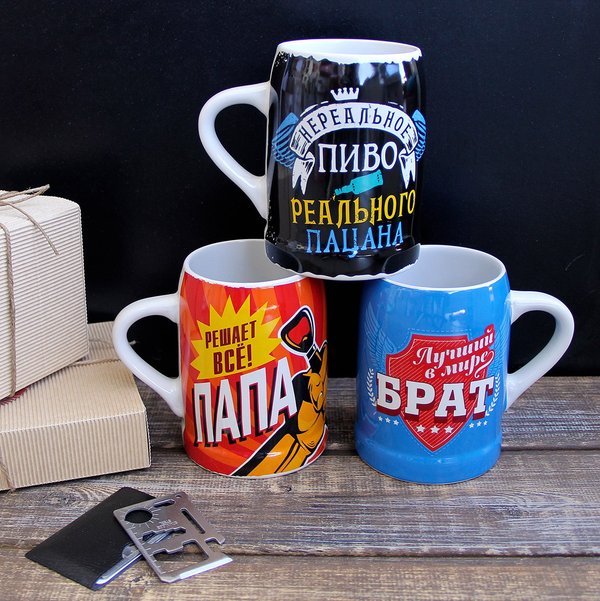 Весна, тепло, шашлыки… да еще и главный мужской праздник не за горами! Пивные кружки подоспели очень кстати! Большие и прочные кружки с таким отличным дизайном — польстят мужскому эго и прекрасно выполнят свою основную функцию ------->