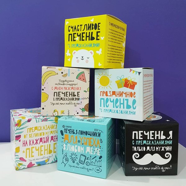 Печенье с предсказаниями! Дааа, они вернулись! Наборы из 7 печенек в коробочке можно подарить или развлечь гостей на мероприятиях и дружеских посиделках А также печенюшки штучно, в индивидуальной упаковке — милое и интересное дополнение к подарку Печенье хрустящее, вкусное! Внутри каждой — записка с предсказанием. Испытай удачу, узнай что тебя ждет ----------->