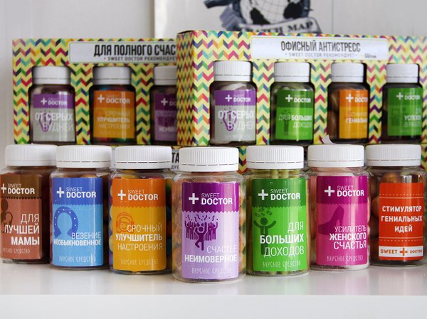 Вкусные лекарства на все случаи жизни! Они настолько оригинальны, что когда когда содержимое заканчивается, упаковку оставляют на память :) Срочный улучшитель настроения, усилитель счастья, генератор гениальных идей, анти-стервозность и многое другое можно найти в нашей необычной аптечке!