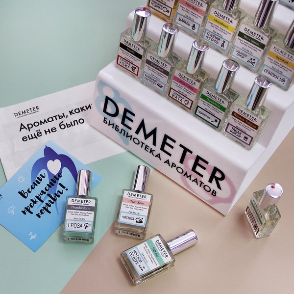Друзья, мы счастливы скорей поделиться с вами новостью! Теперь наш любимый магазин «Есть идея!» официальный продавец самой необычной парфюмерии в мире — Demeter! Это духи, которых еще не было: с ароматом грозы, моря, мороженого, травы, книжного переплета — да чего угодно. Сейчас у нас представлено 20 совершенно потрясающих и разносторонних ароматов и тестеры к ним. Это настоящие эмоции внутри флакона! Идеальны под особенное настроение и на каждый день. Приходите выбирать свой аромат, разделите наш восторг! ------->