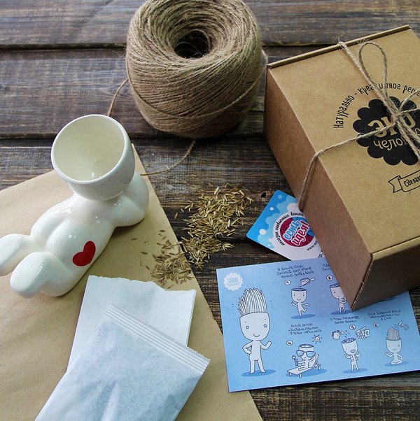 Эко-семейство снова в сборе! Кто ждал и спрашивал определенную фигурку — приходите за своим зеленым другом! Что внутри набора: — керамическая фигурка — пакет с грунтом — пакет с семенами, из которых в итоге получится травяная прическа — инструкция по выращиванию — коробка В ассортименте 12 видов экочеловеков! ------>