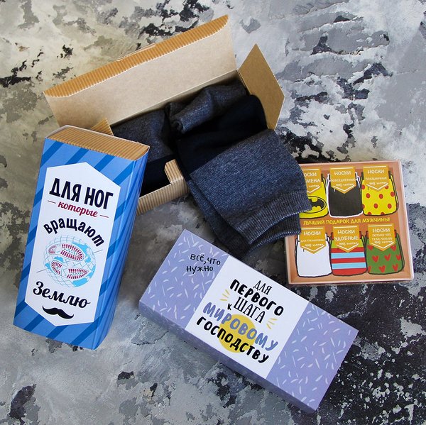 Дарить мужчине носки не оригинально? А вот и нет! В такой интригующей упаковке — это самый практичный подарок, при этом способный по-настоящему удивить :) Внутри коробки две пары мужских носков и несокрушимая уверенность в себе! --------->
