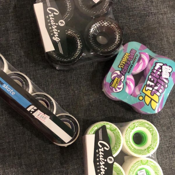 Комплект универсальных колес от Юнион с жесткостью 100А и 101А. Большое пятно контакта обеспечивает хорошее сцепление. Выполнены из качественного полиуретана.